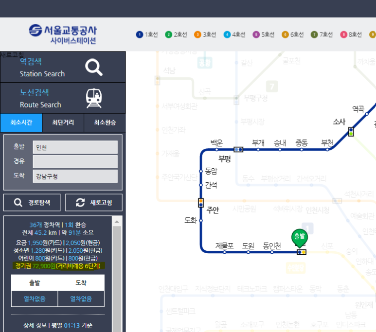 거리비례용 정기권 요금은 "서울교통공사 사이버스테이션"에서 간단하게 계산해볼 수 있다!