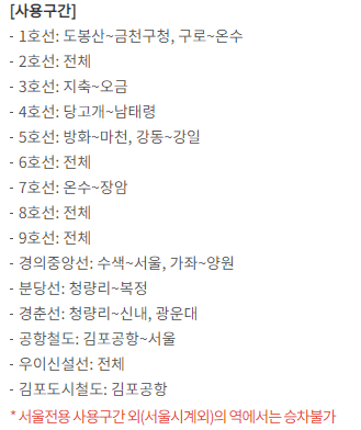 (서울 이외의 지역에서 하차는 가능하나, 추가로 승차 횟수가 소요된다. 자세한 내용은 아래에서)